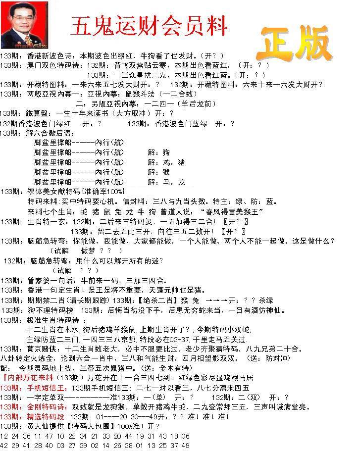 133期-正版五鬼运财会员料