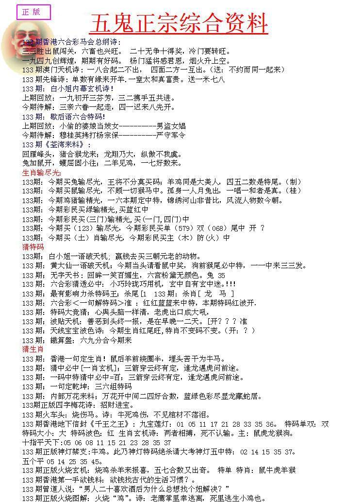 133期-五鬼正宗会员综合资料A