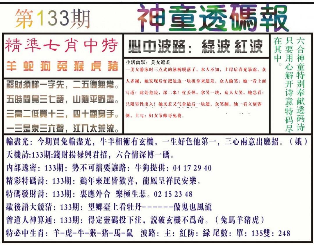 133期-神童透码报(正版)